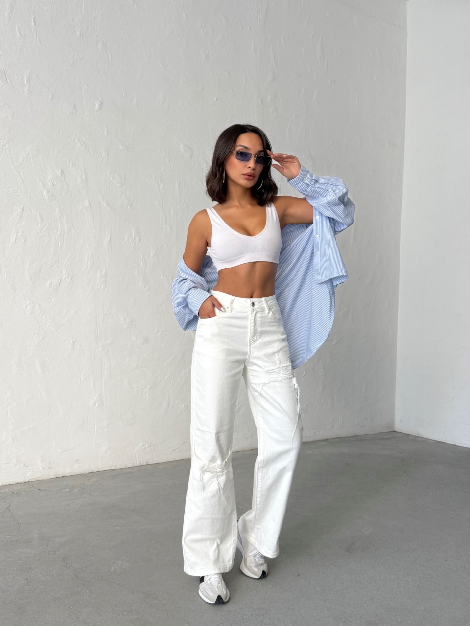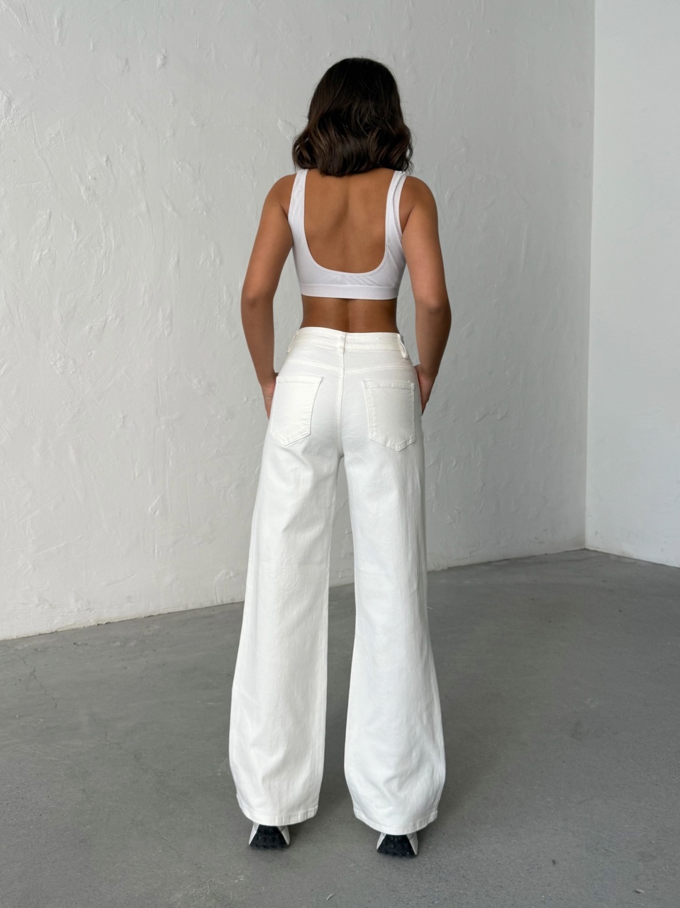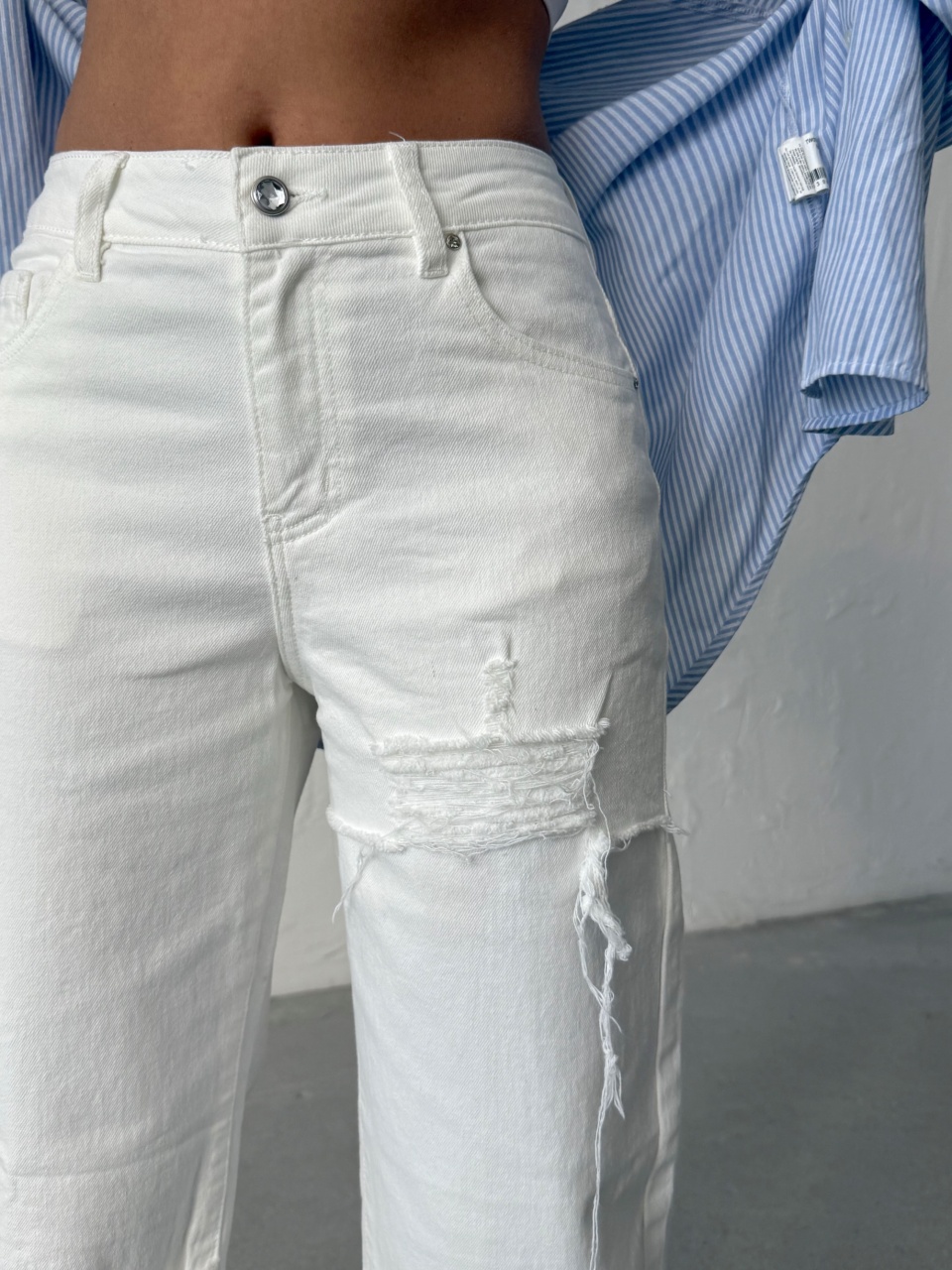 Blugi albi evazati elastici
