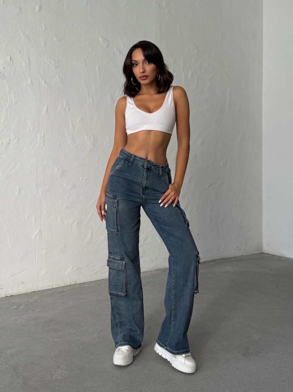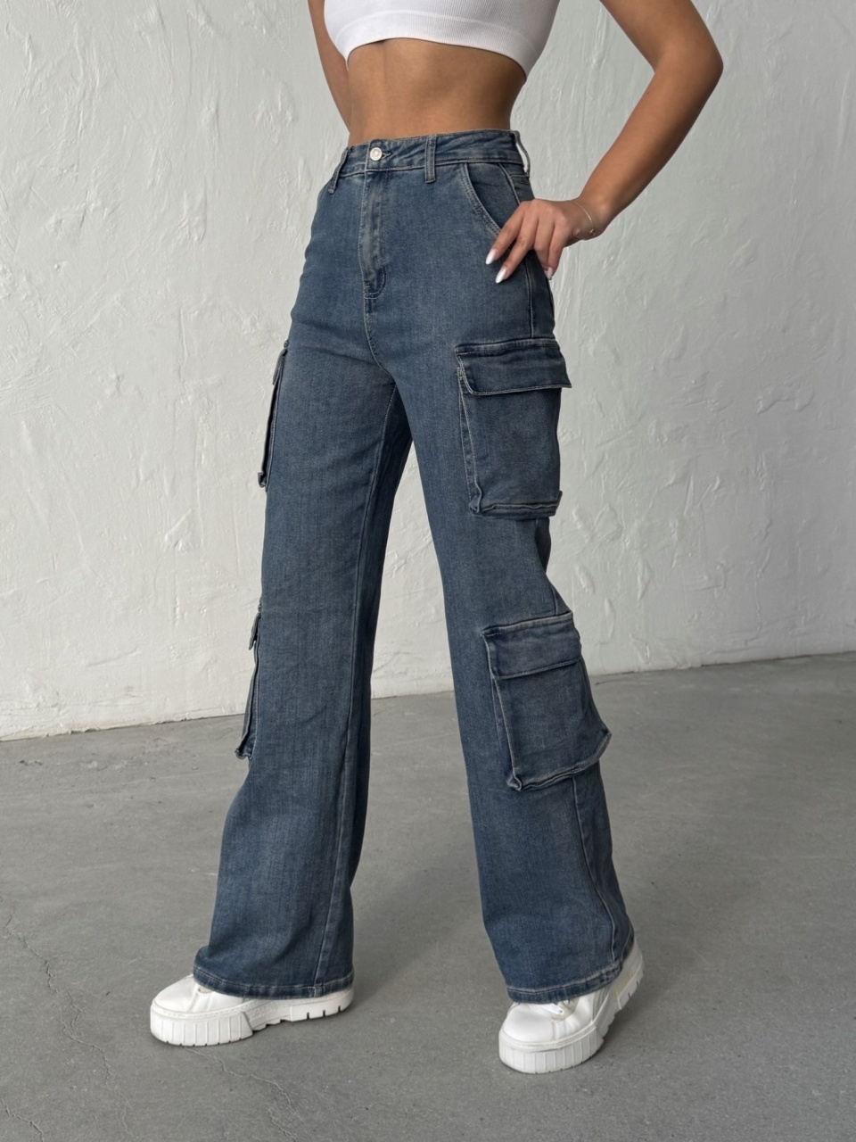 Blugi cargo elastici
