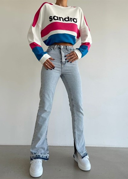Blugi dama drepti cu crapatura pe lateral