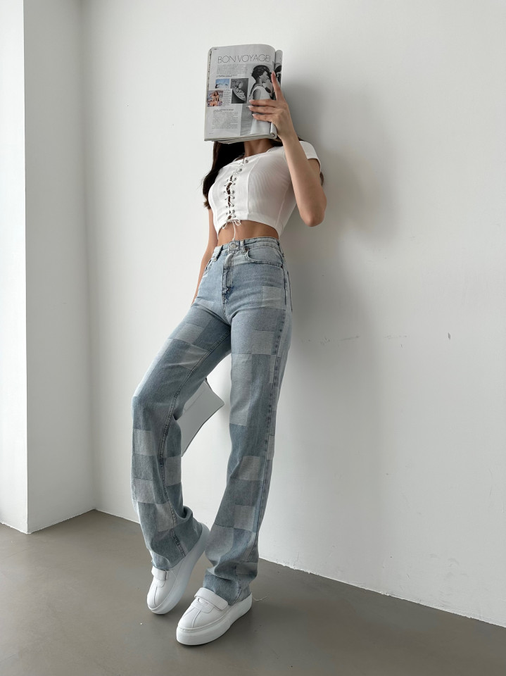 Blugi dama evazați in carouri