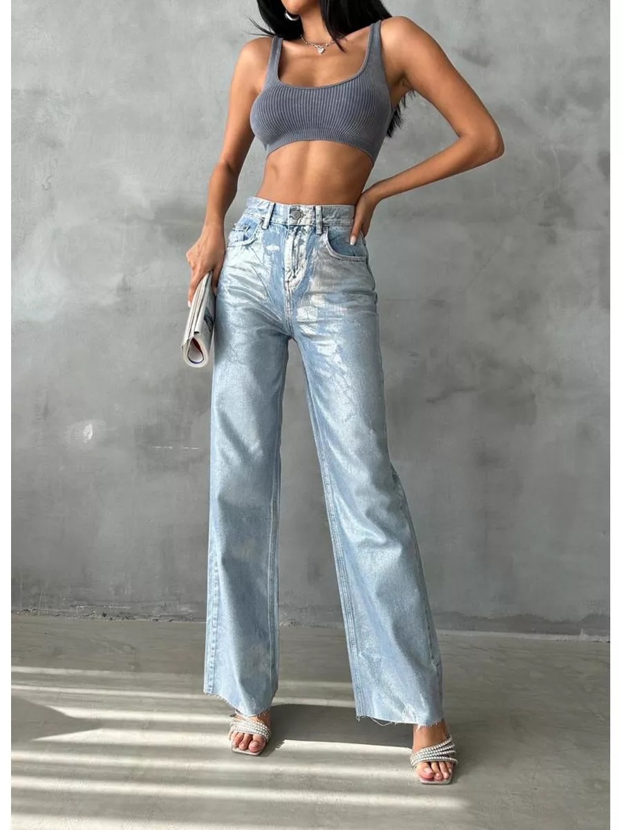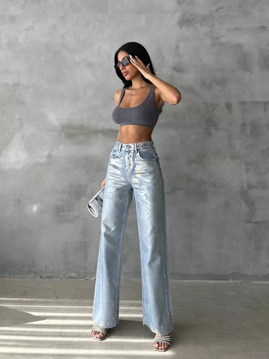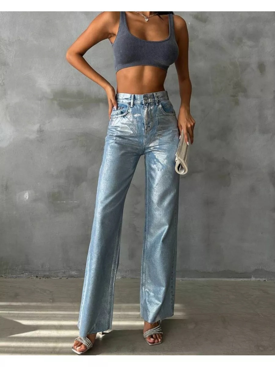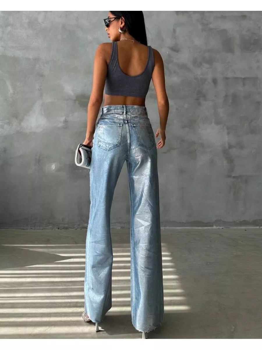 Blugi evazati cu aspect lucios