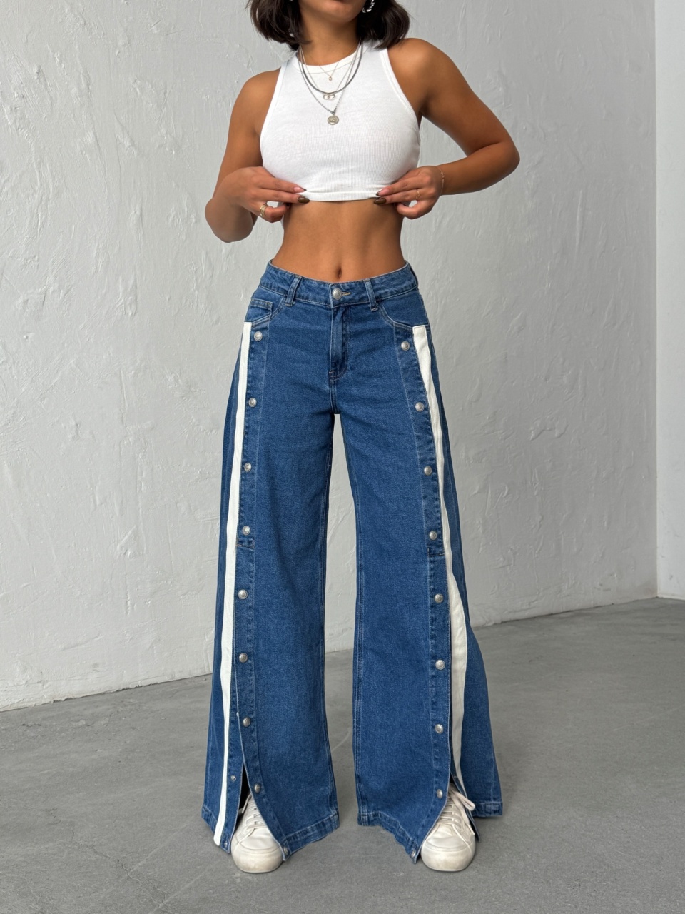 Blugi evazati cu capse