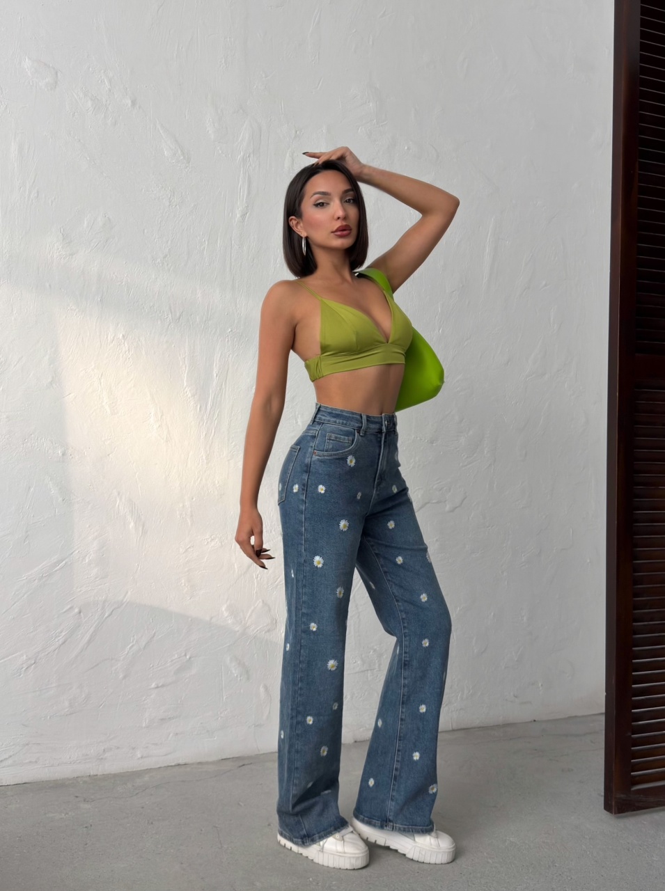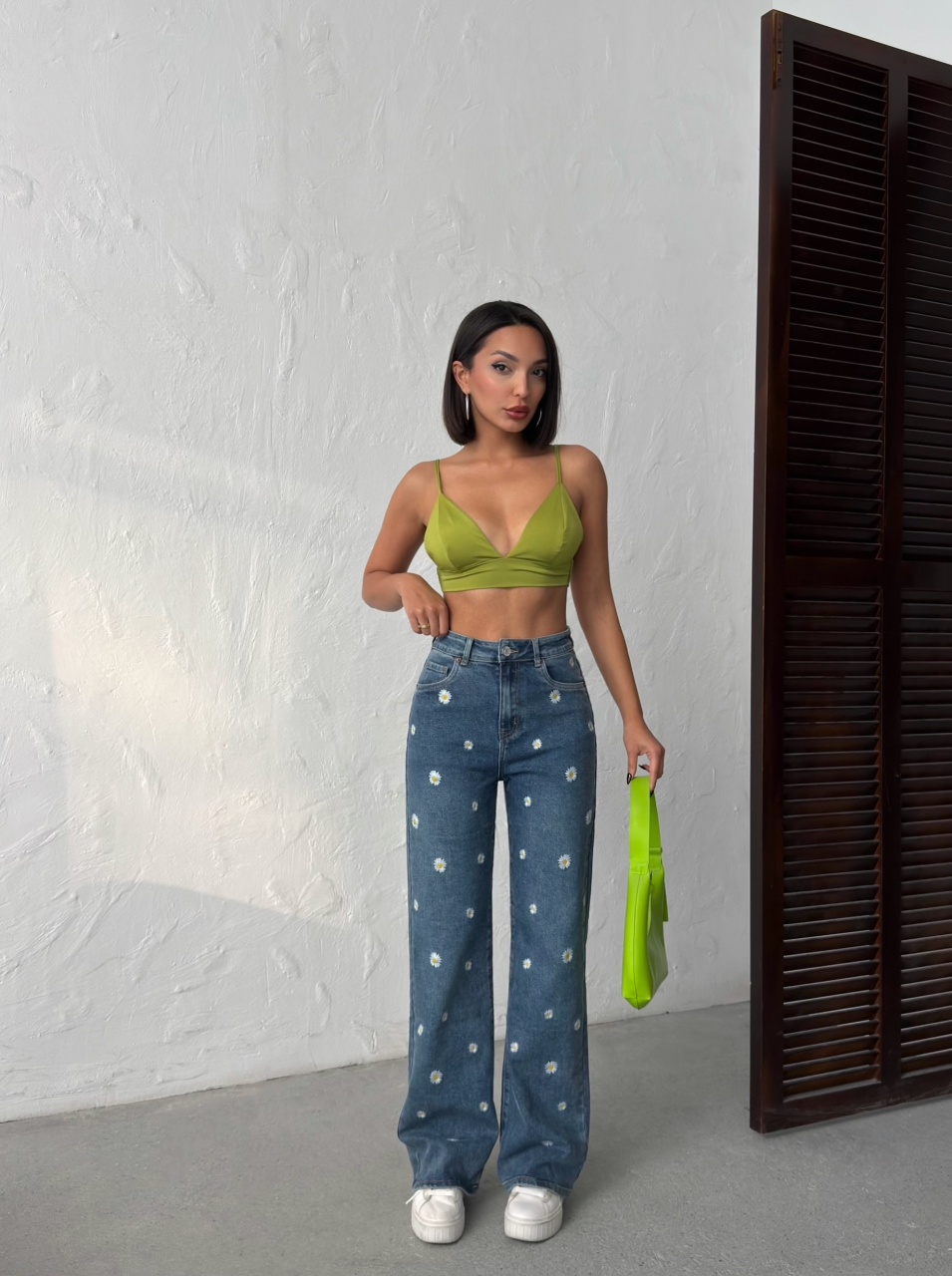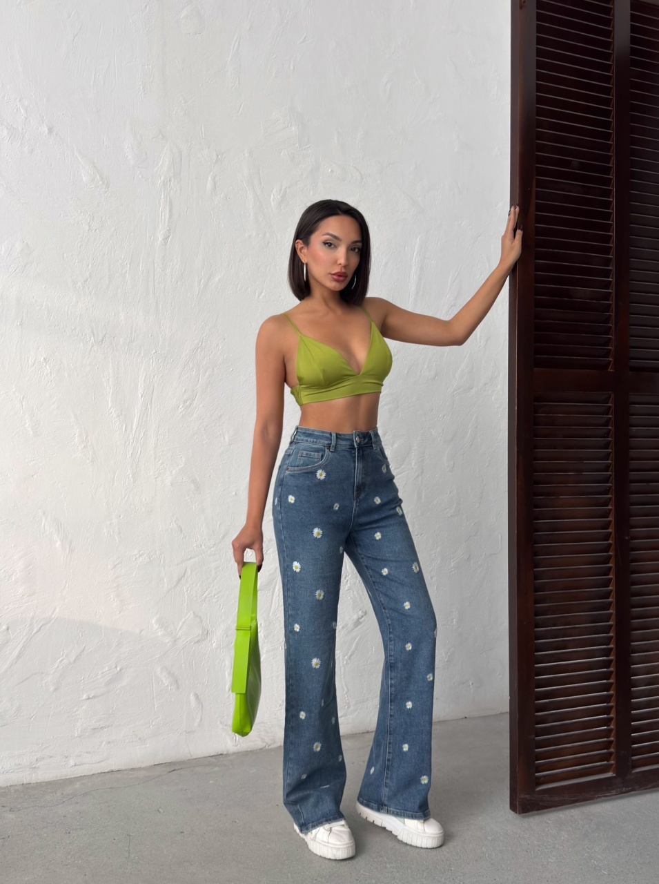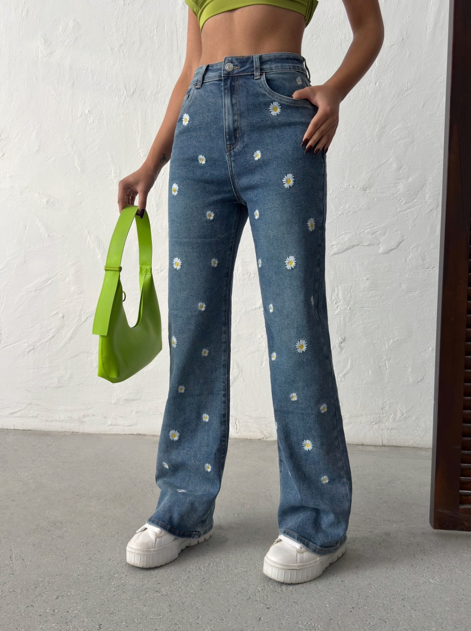 Blugi evazati cu design floral