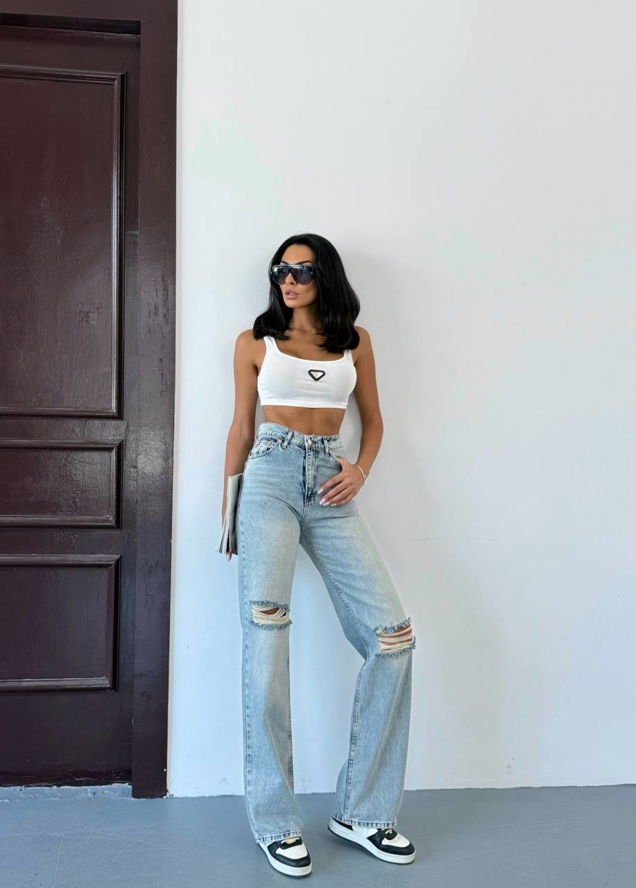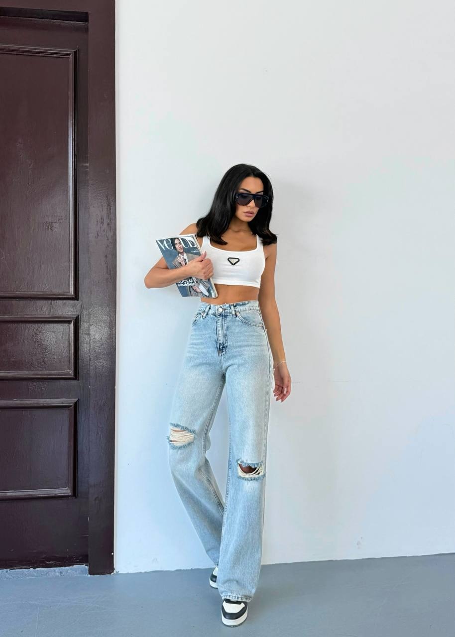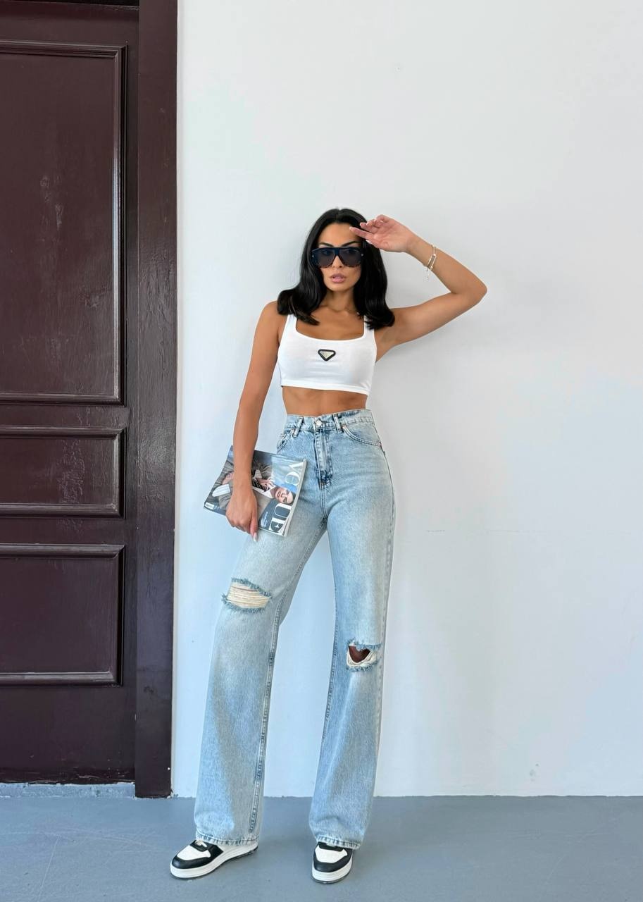 Blugi evazati cu rupturi