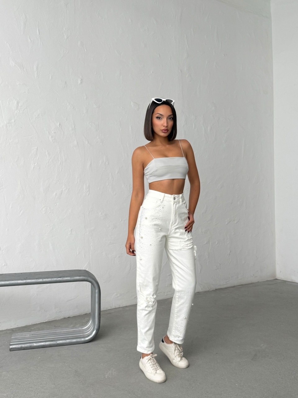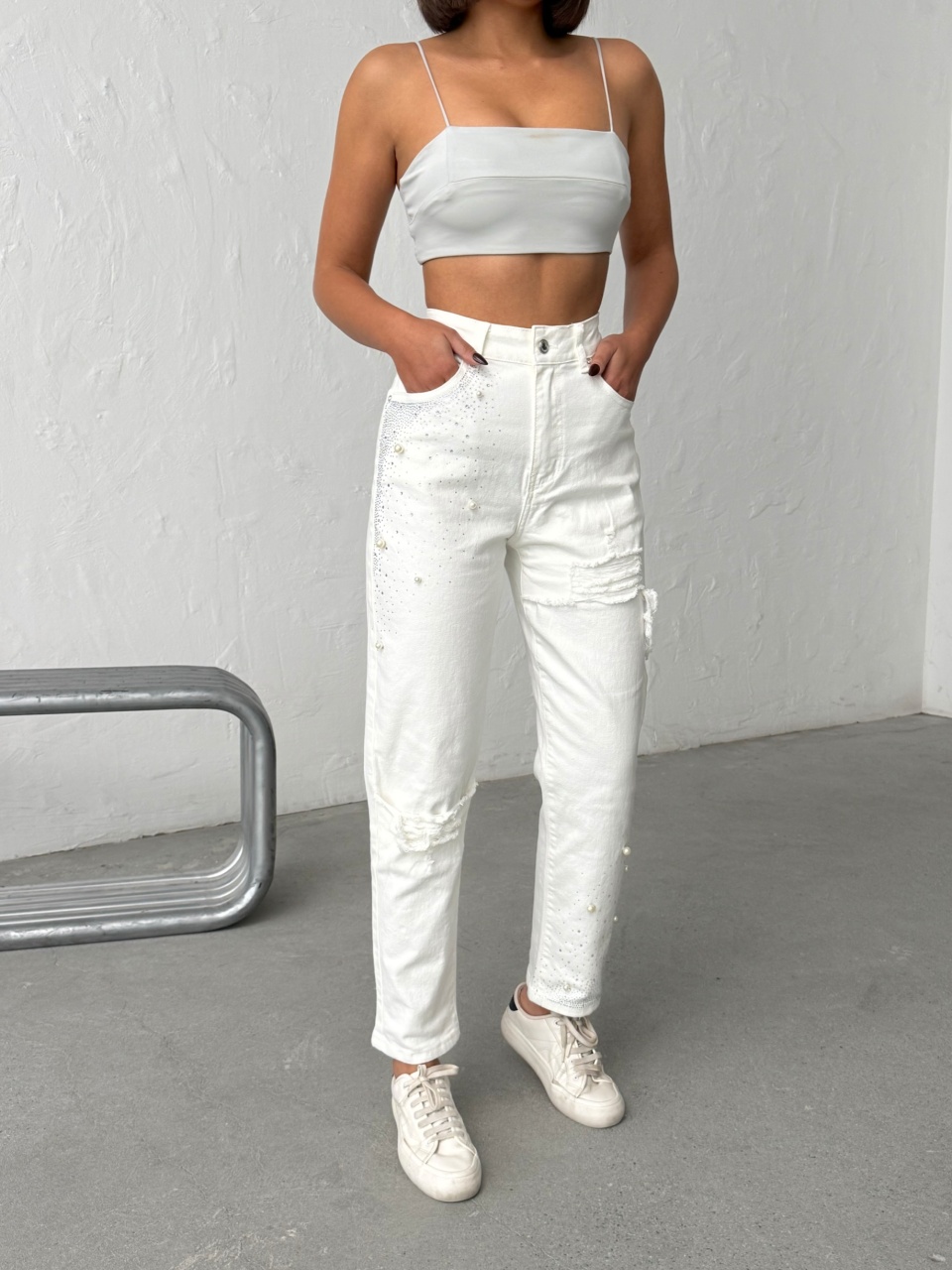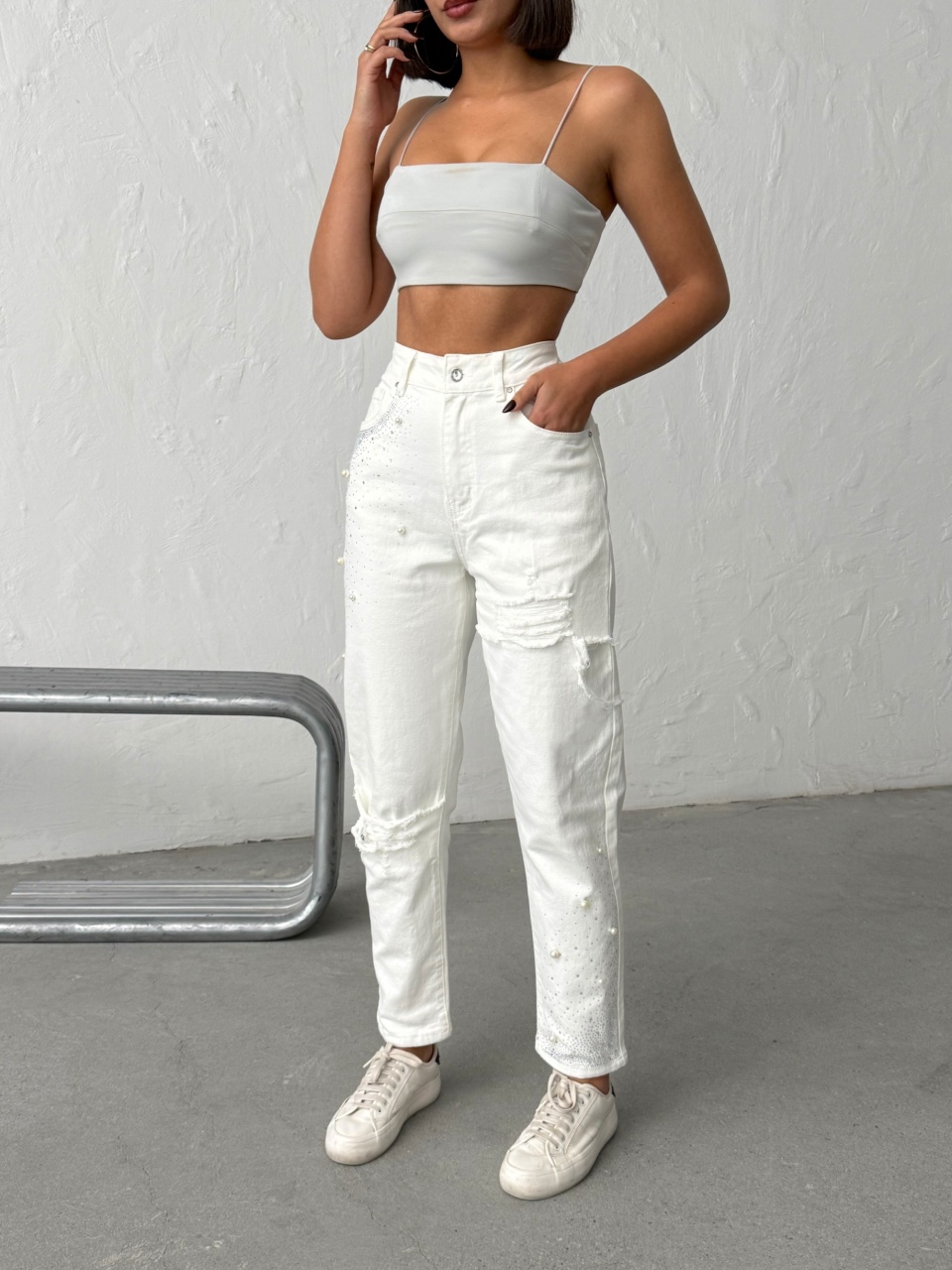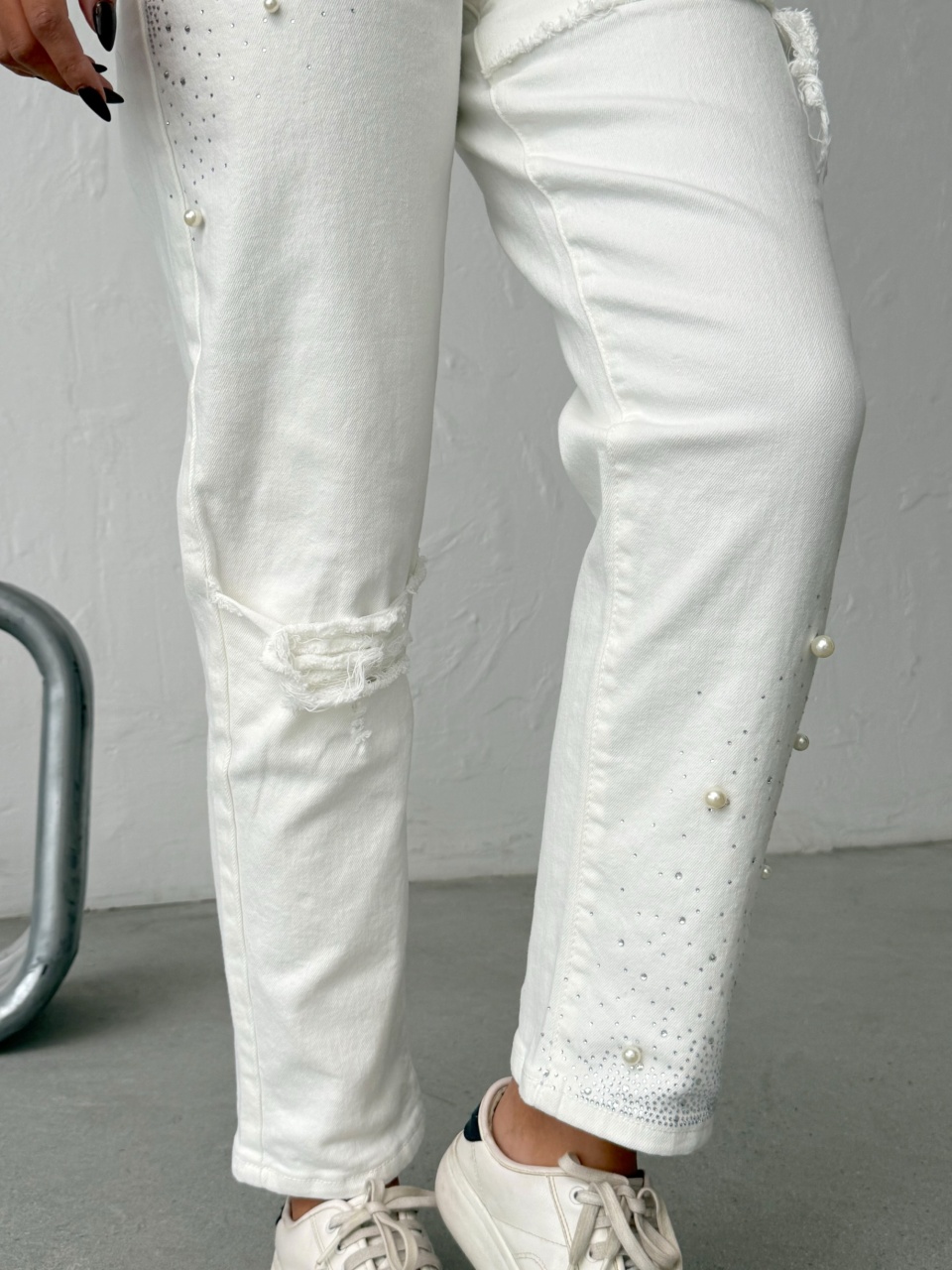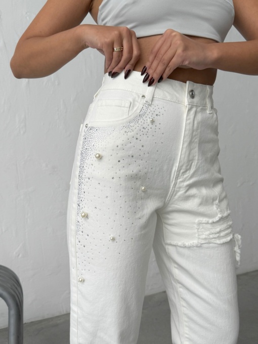 Blugi mom fit cu detalii decorative