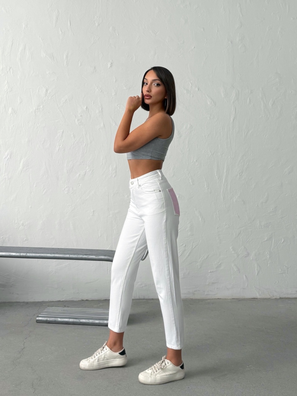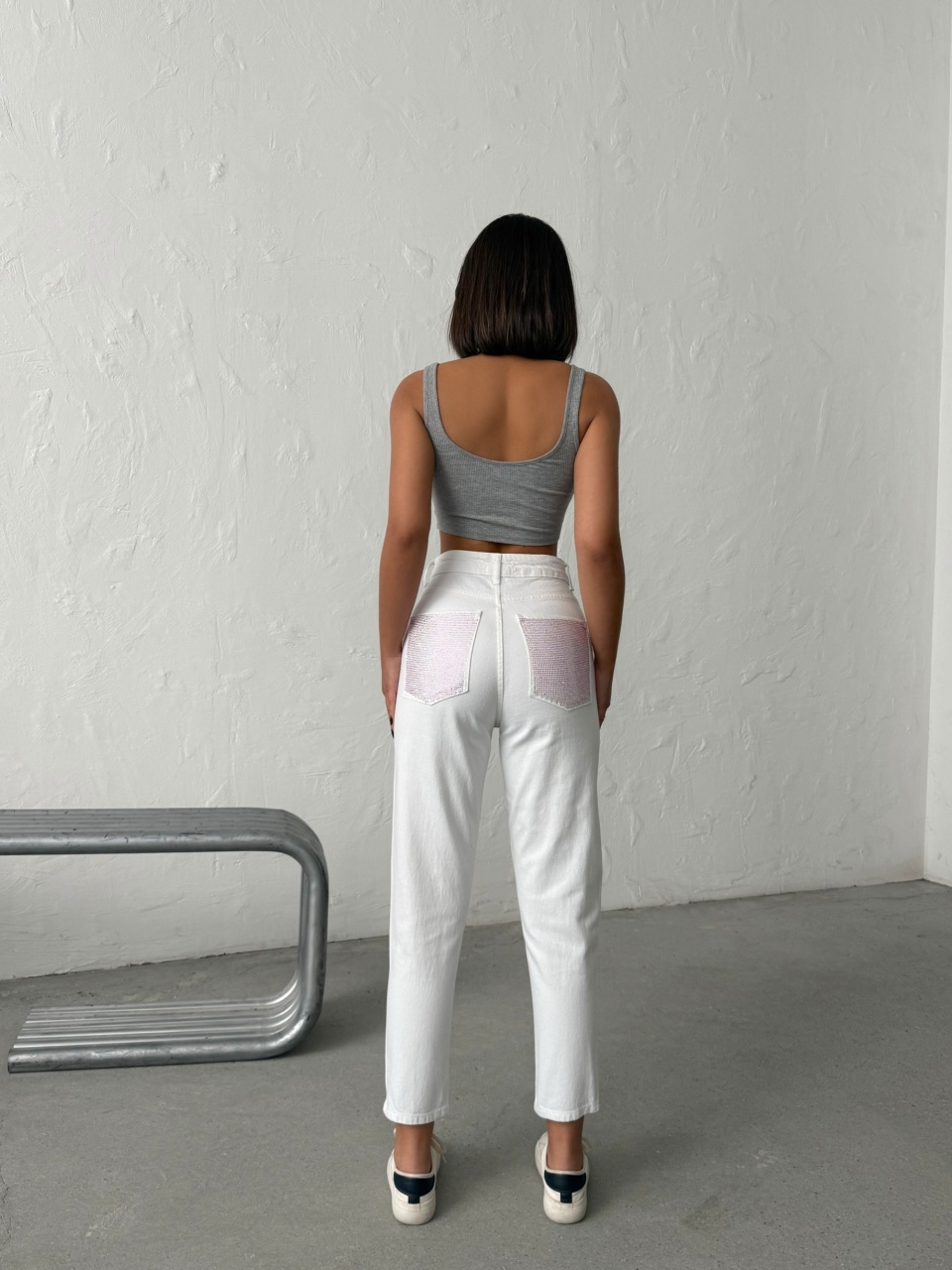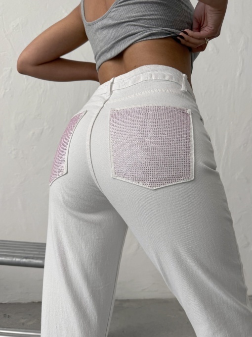 Blugi mom fit cu detalii strălucitoare