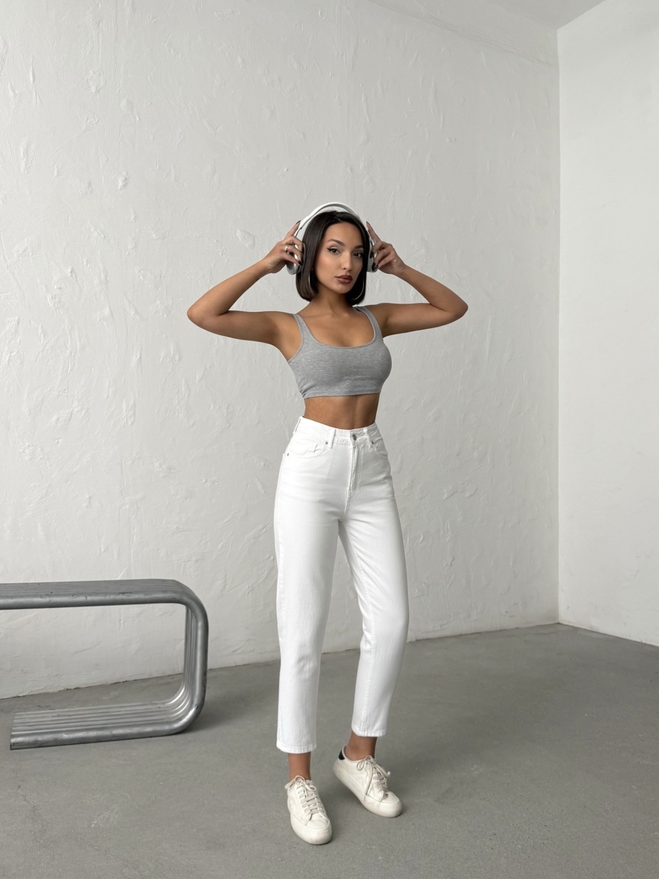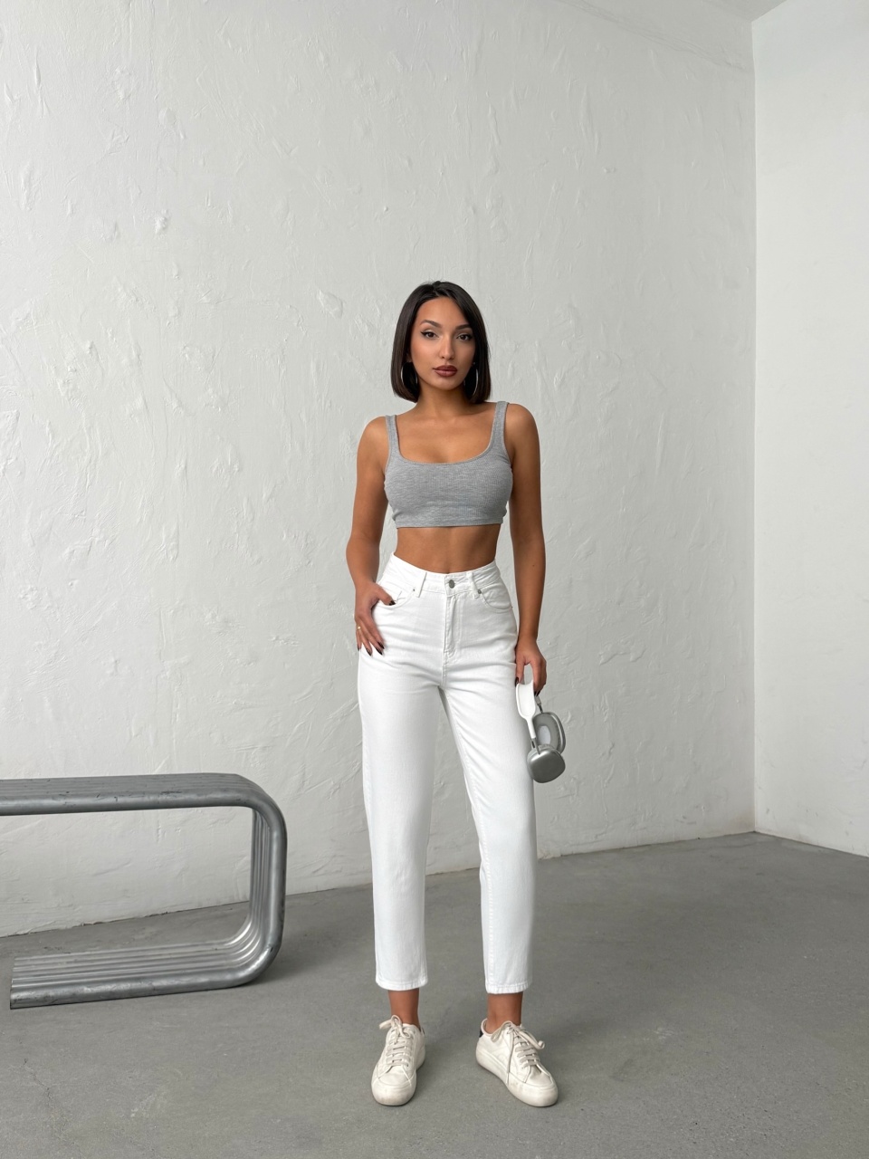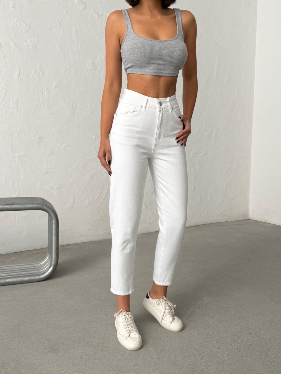 Blugi mom fit cu detalii strălucitoare