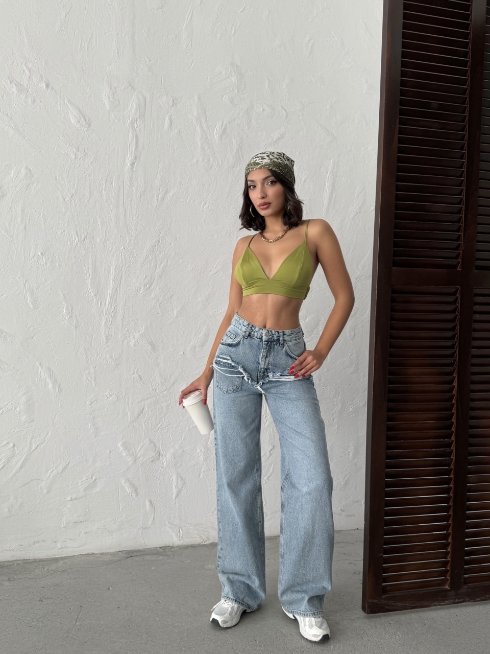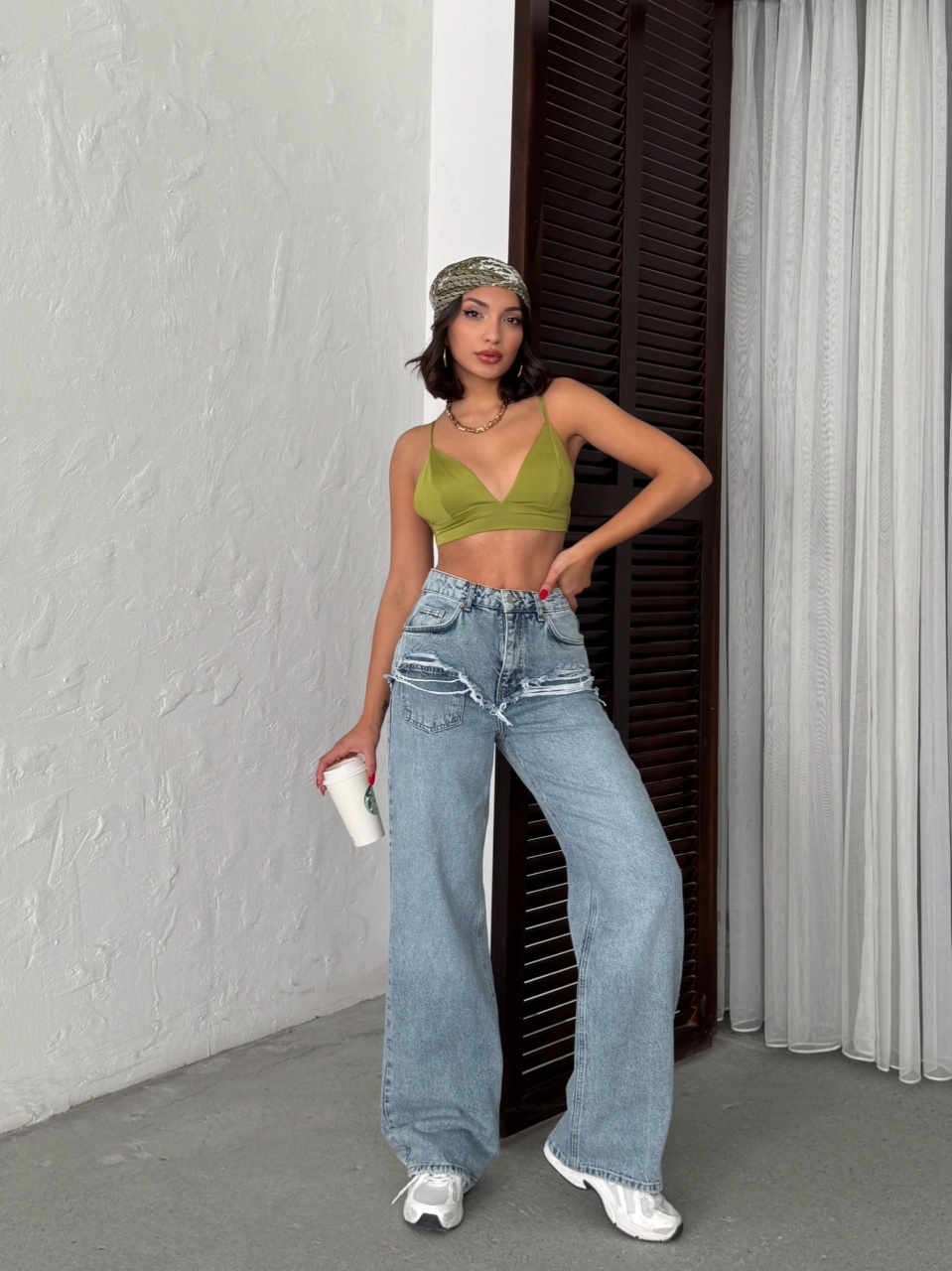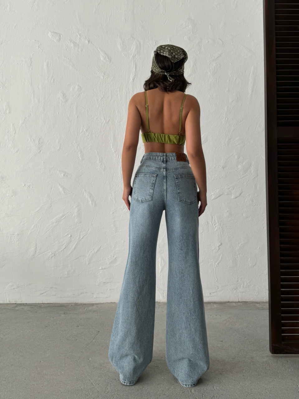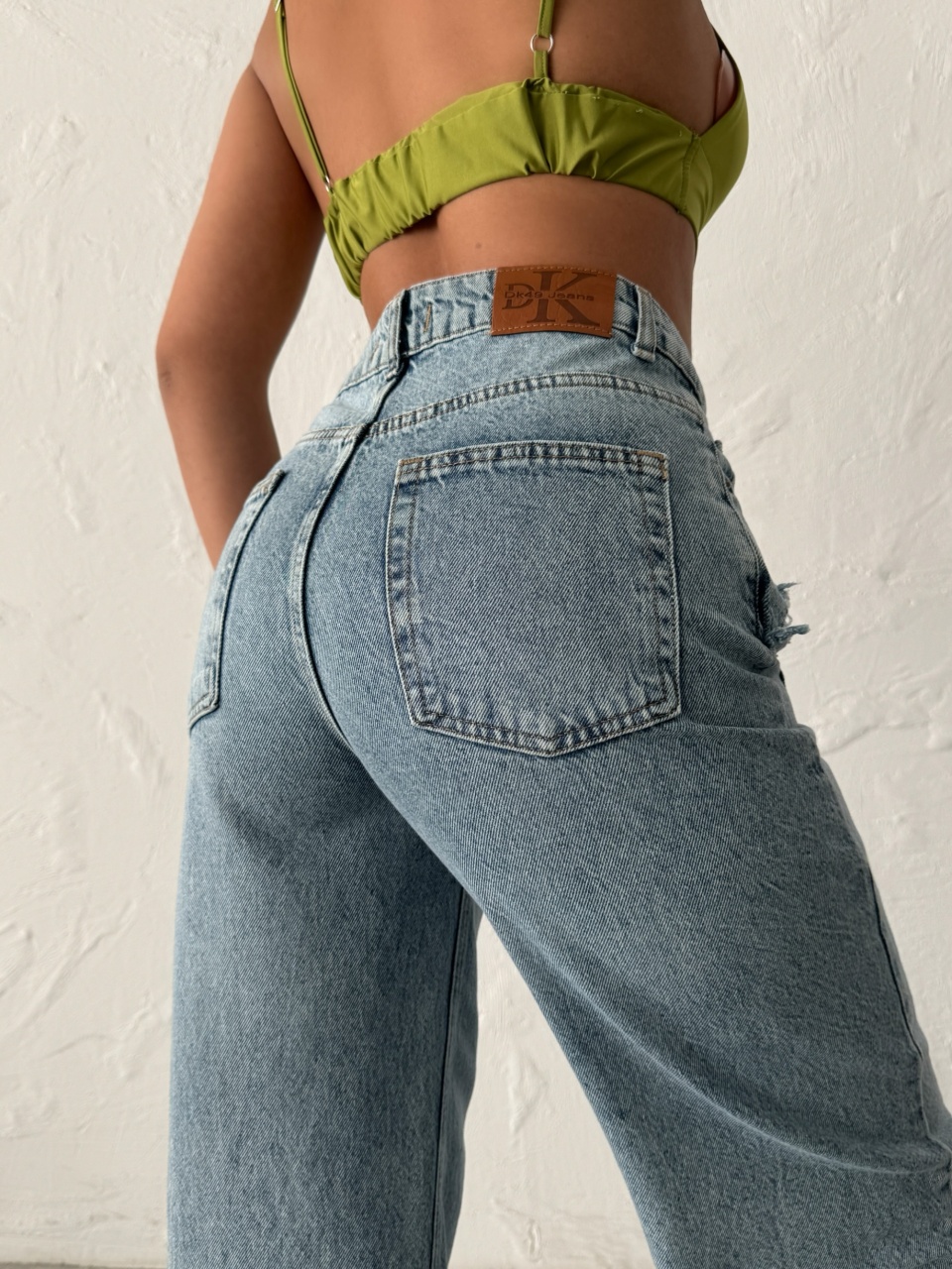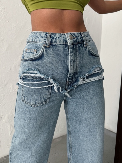 Blugi wide leg cu abraziuni în față, în zona buzunarelor