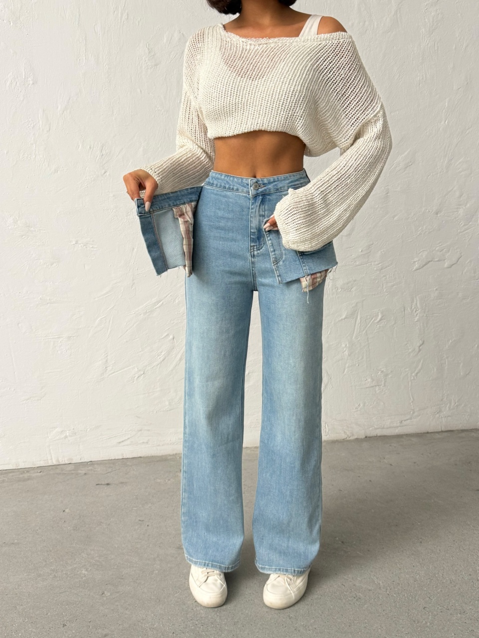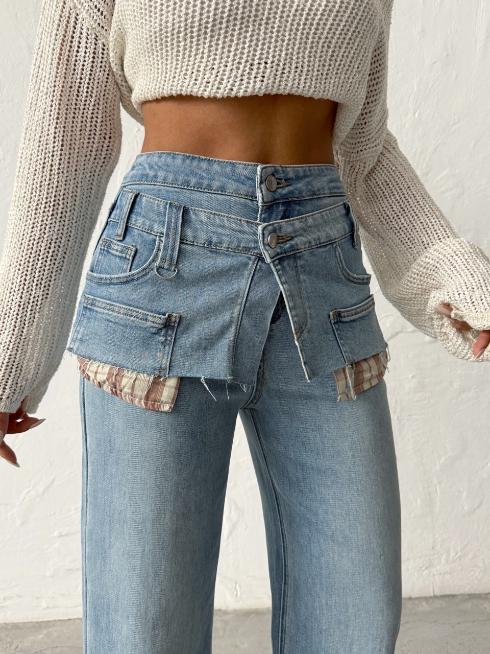 Blugi wide leg cu accesoriu tip fusta