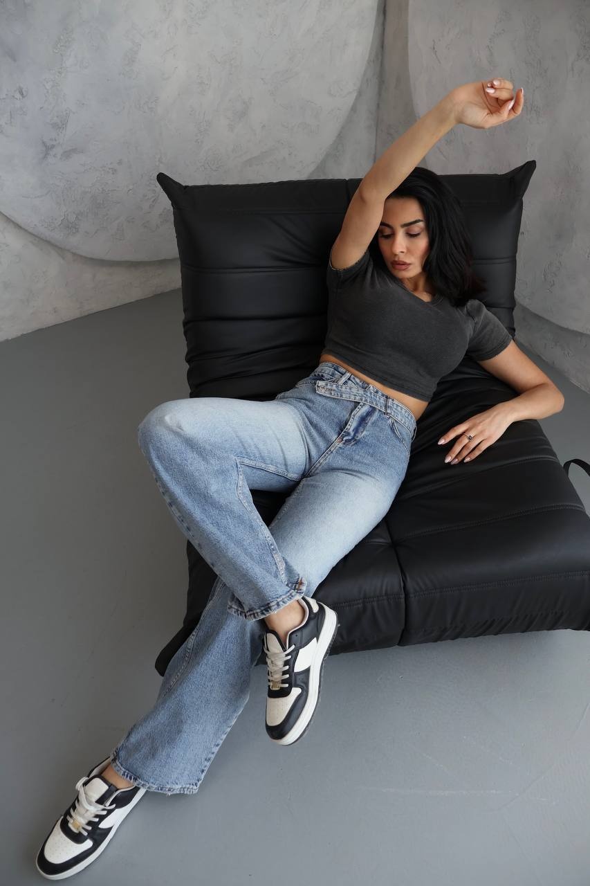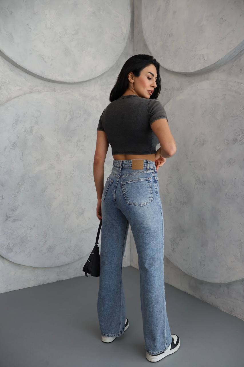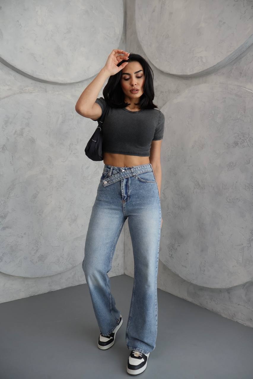Blugi wide leg cu betelie petrecuta