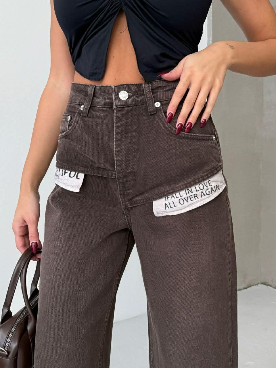 Blugi wide leg cu buzunare pe exterior