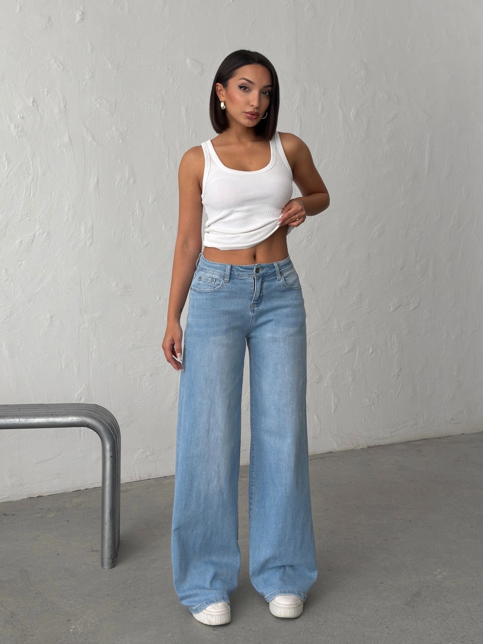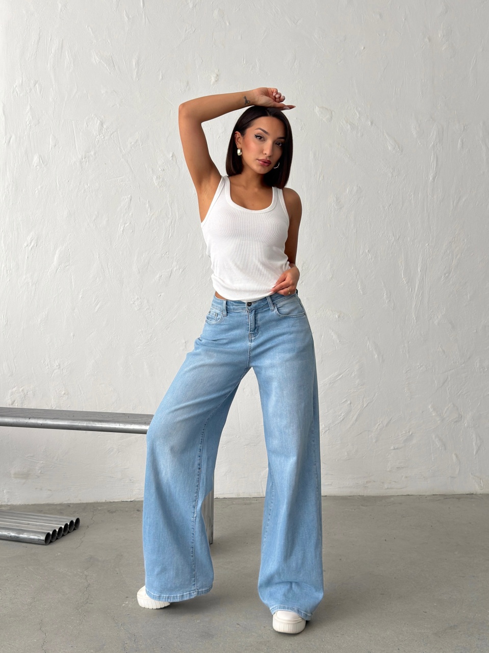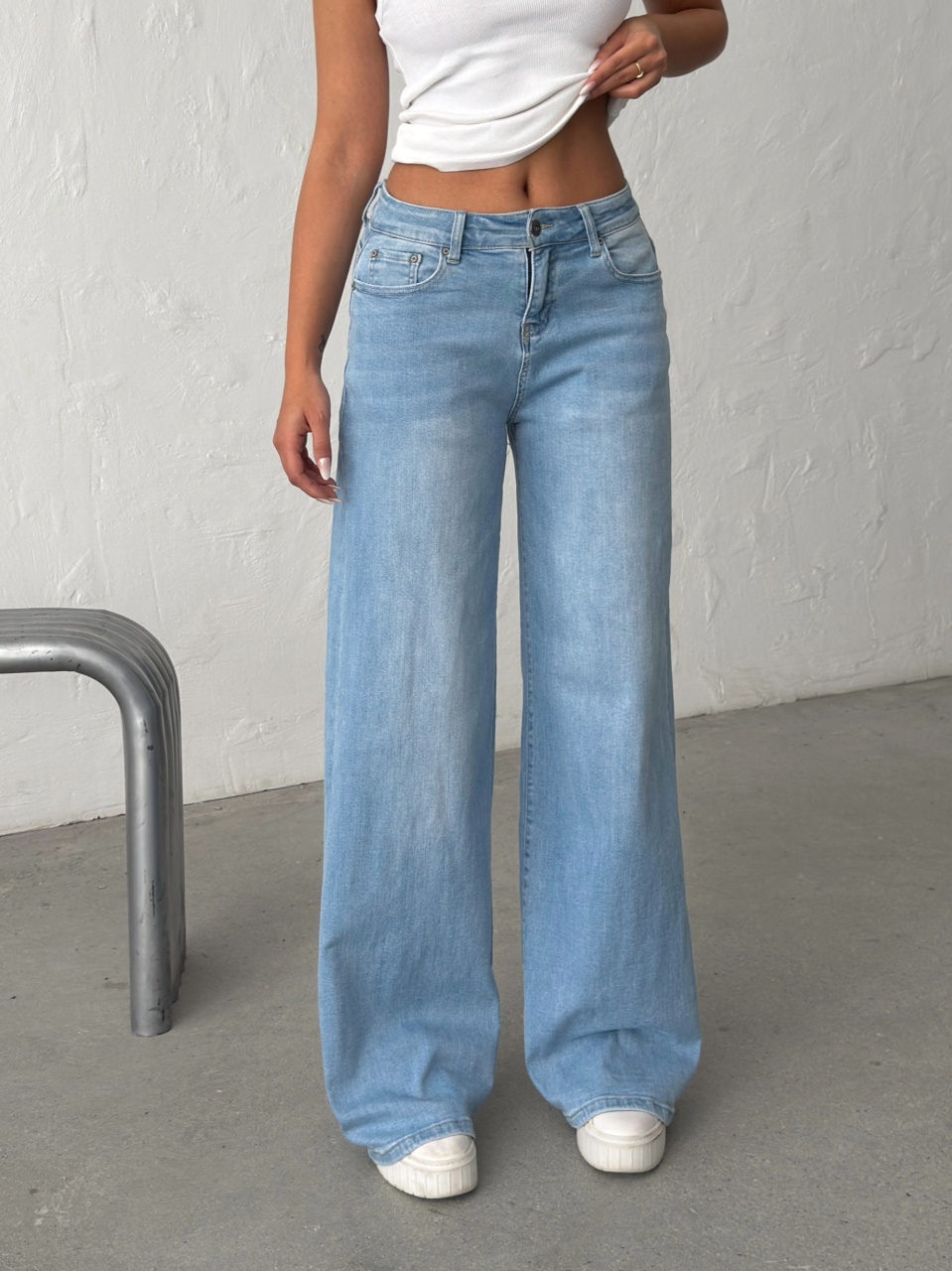 Blugi wide leg cu inserții roz