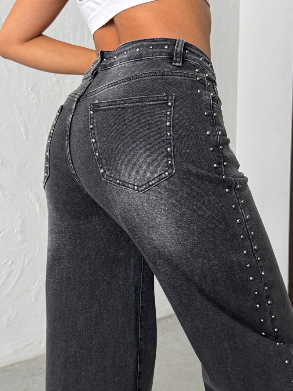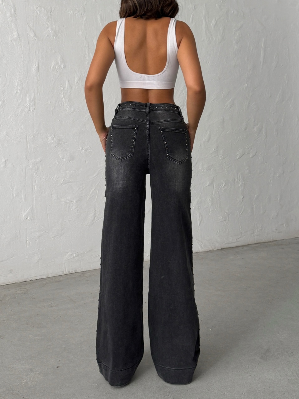 Blugi wide leg cu tinte pe lateral