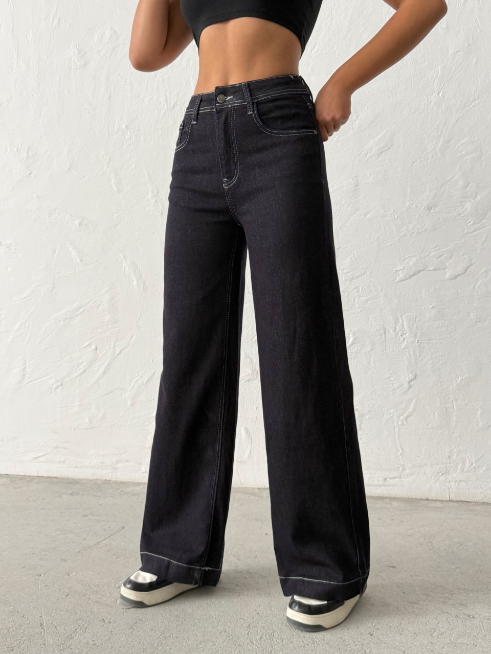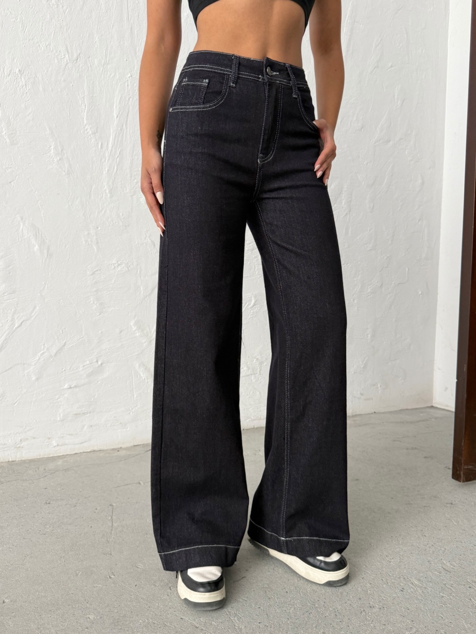 Blugi wide leg elastici cu detaliu cusaturi