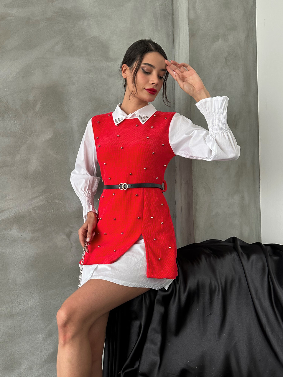 Camasa stil vesta cu accesoriu curea