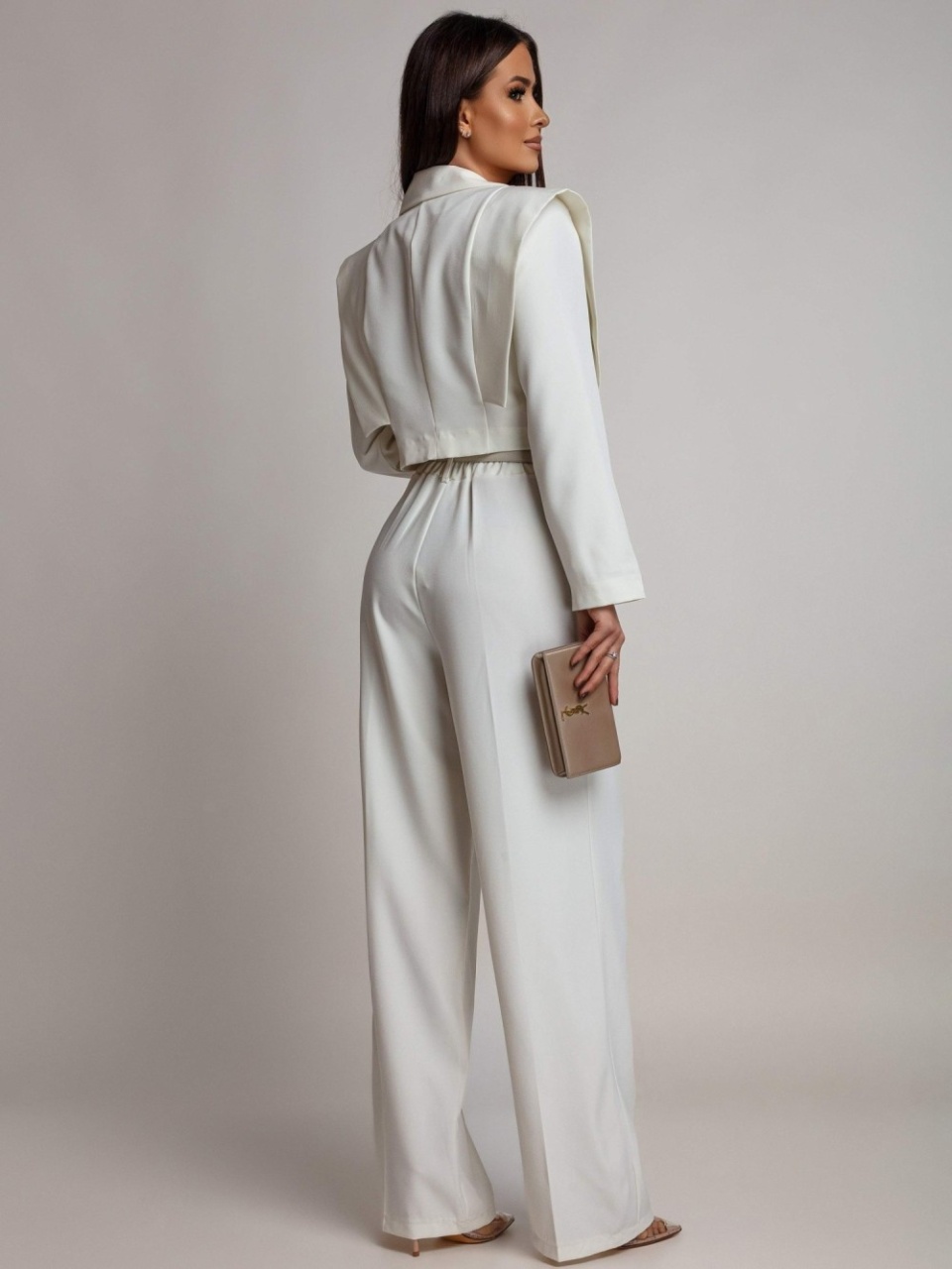 Costum cu pantalon evazat si sacou scurt