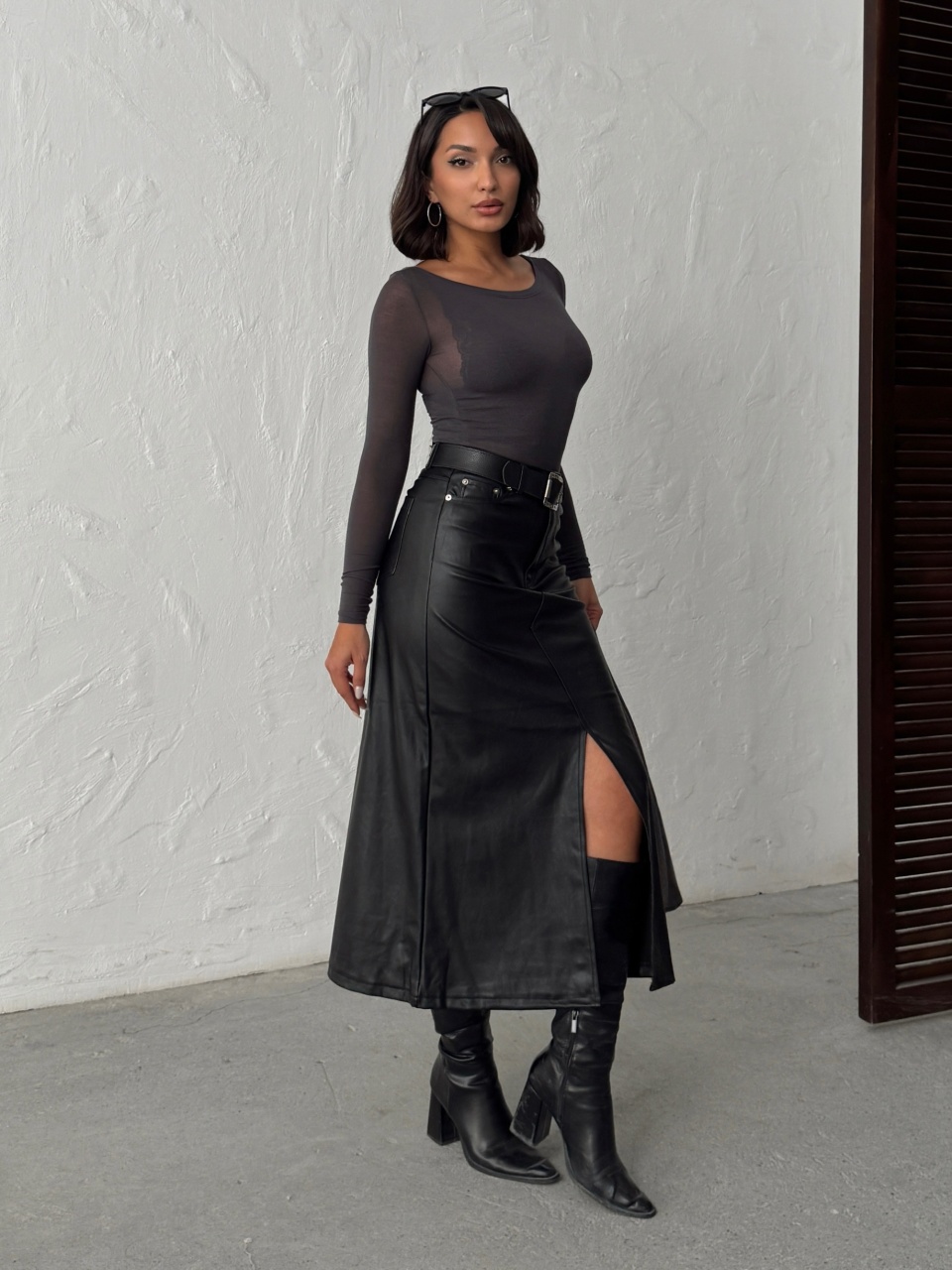 Fustă din piele ecologică cu crăpătură centrală