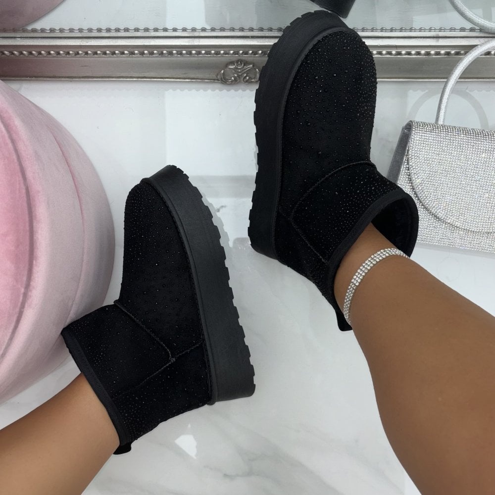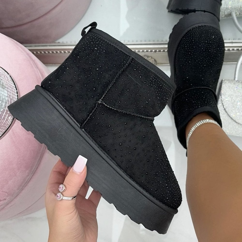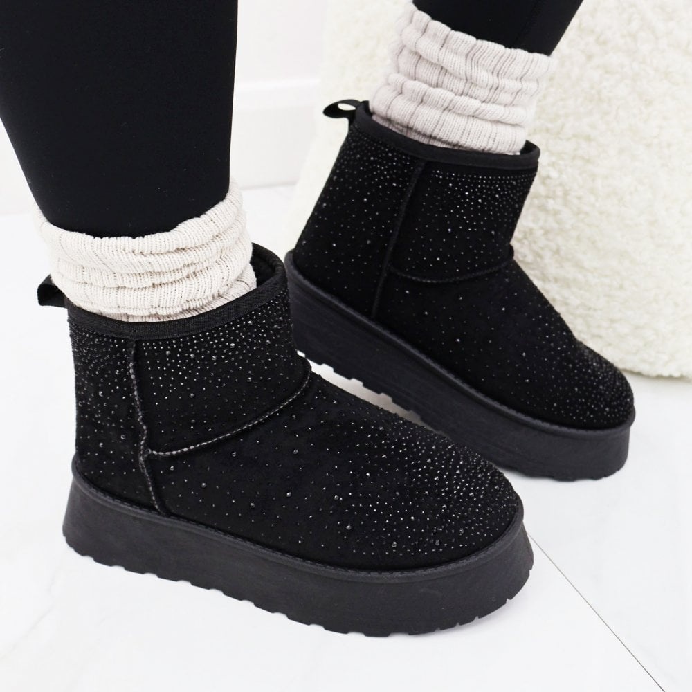 Dacă vrei să adaugi o notă de strălucire garderobei tale de toamnă-iarnă, ghetele noastre cu platformă strălucitoare sunt răspunsul! Căptușite cu blană artificială moale și mătăsoasă, finisate cu detalii strălucitoare și o platformă confortabilă, dar groasă, acestea sunt modelul perfect pentru a te ține în timpul lunilor reci. Pregătește-te să strălucești la fiecare pas.