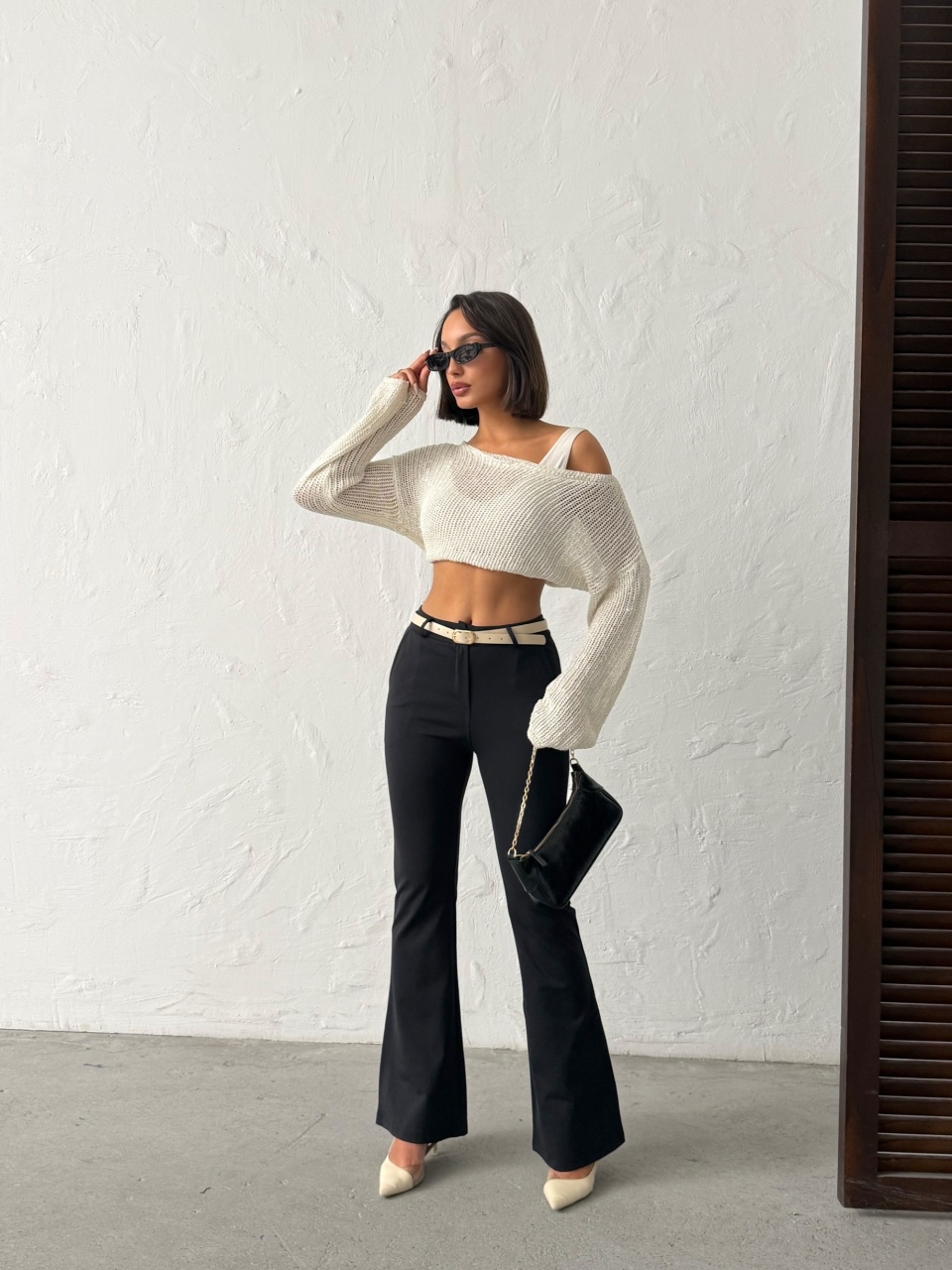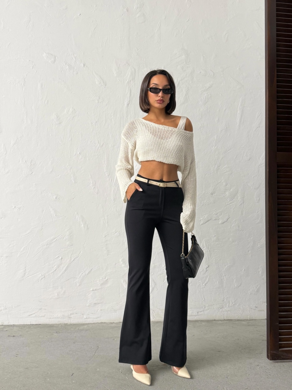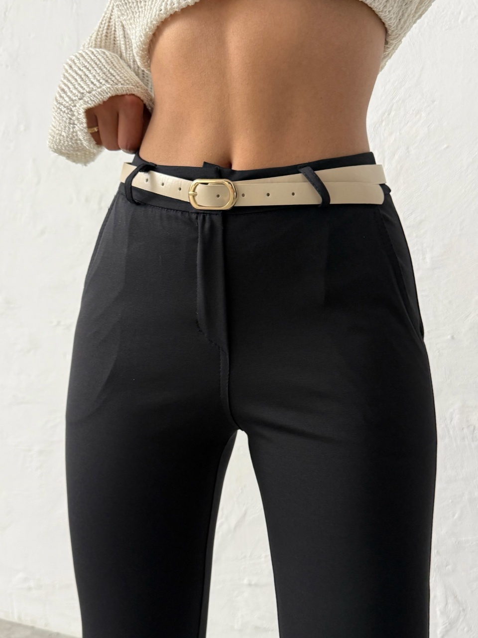 Pantaloni dama evazati cu accesoriu curea