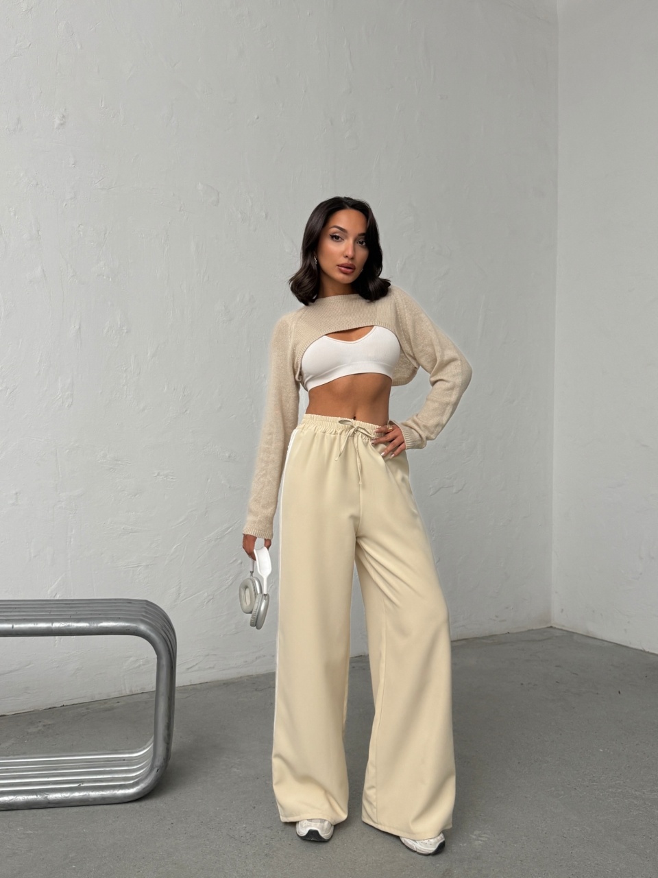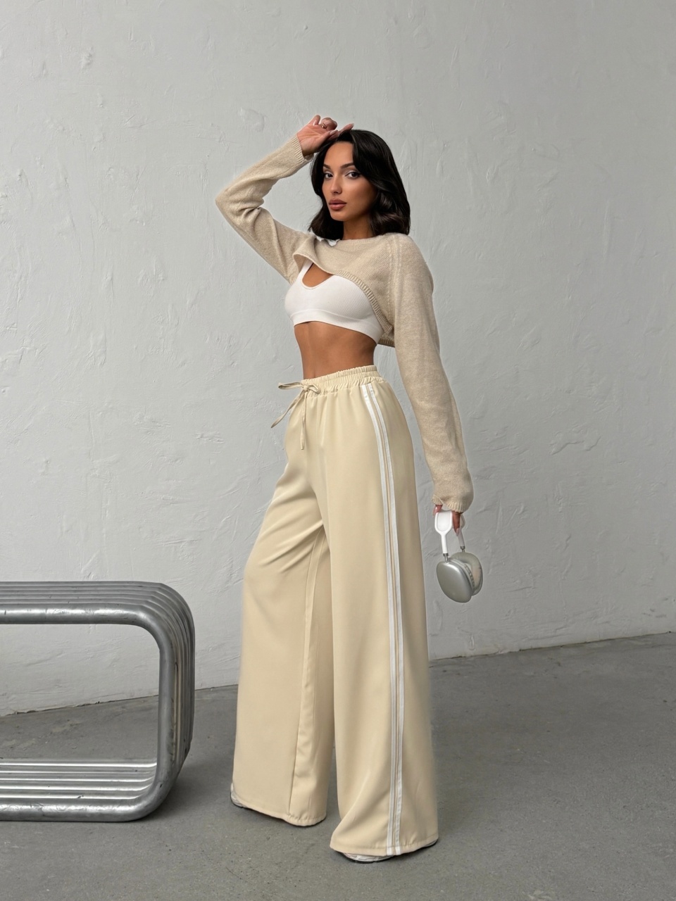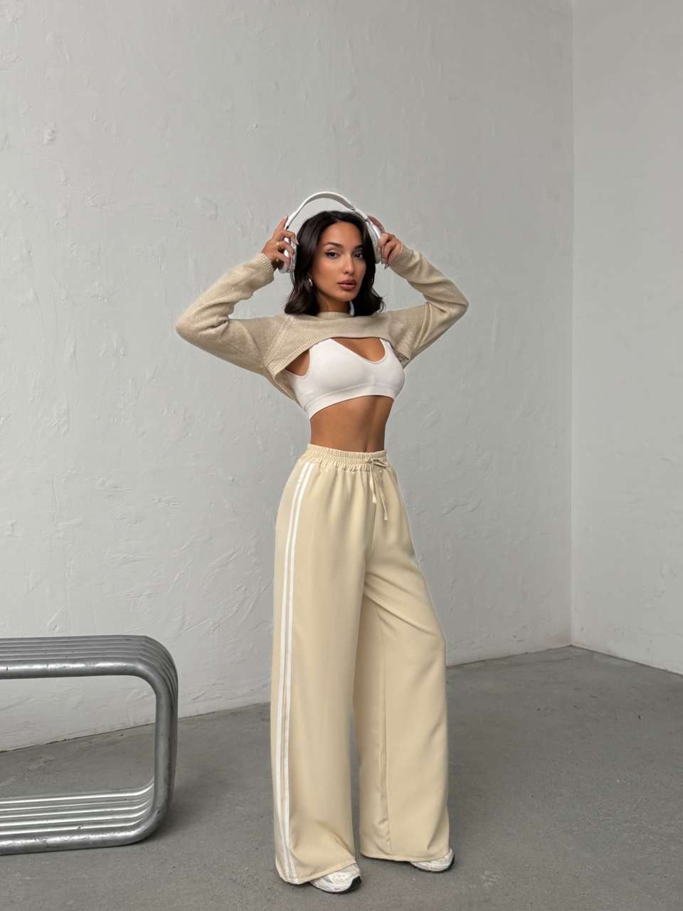 Pantaloni evazati cu detaliu dungi
