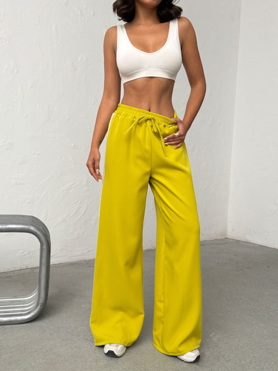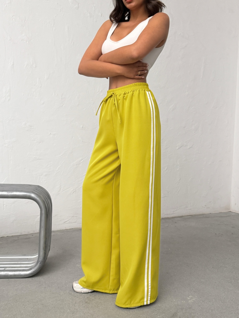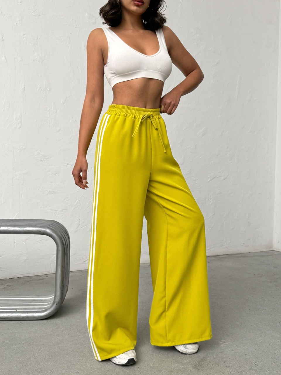 Pantaloni evazati cu detaliu dungi