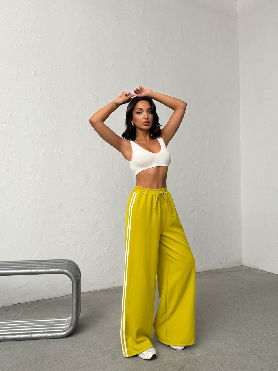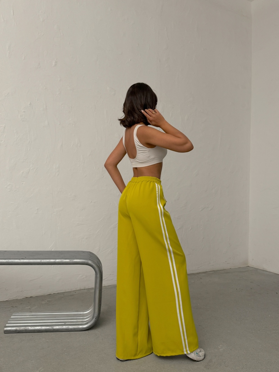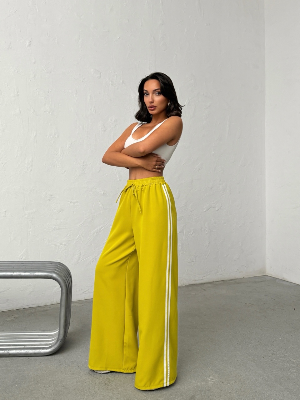 Pantaloni evazati cu detaliu dungi