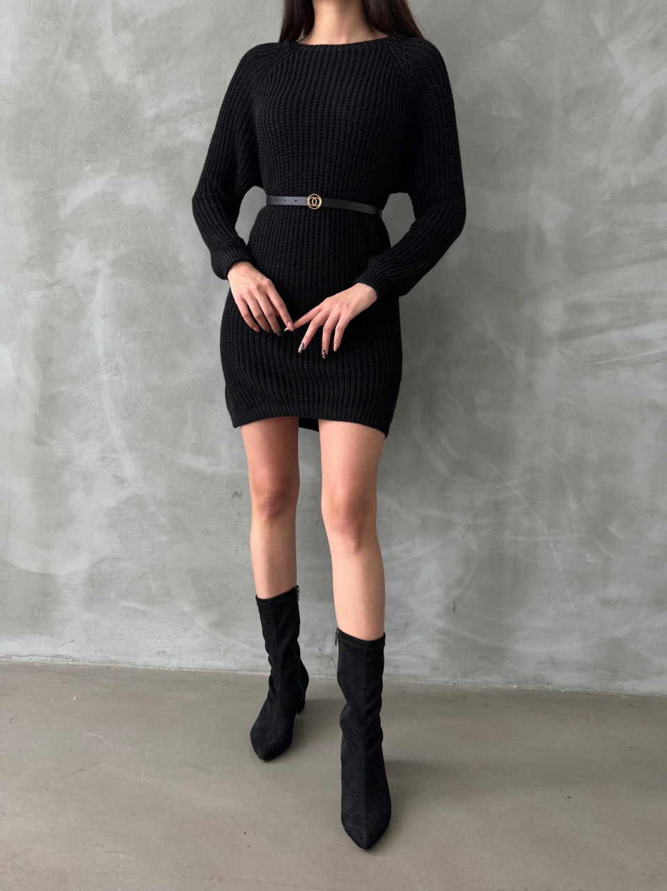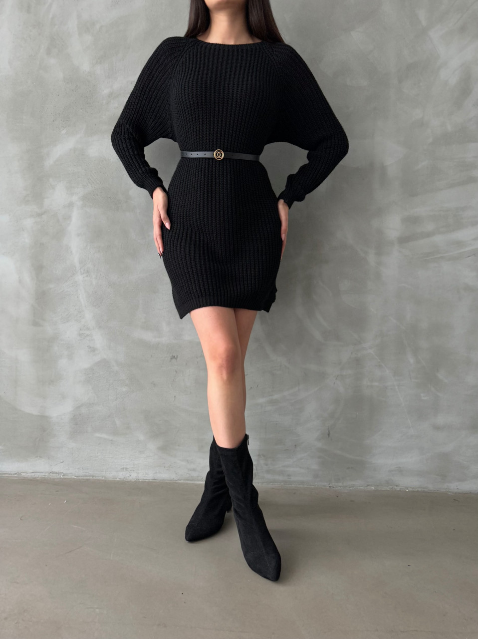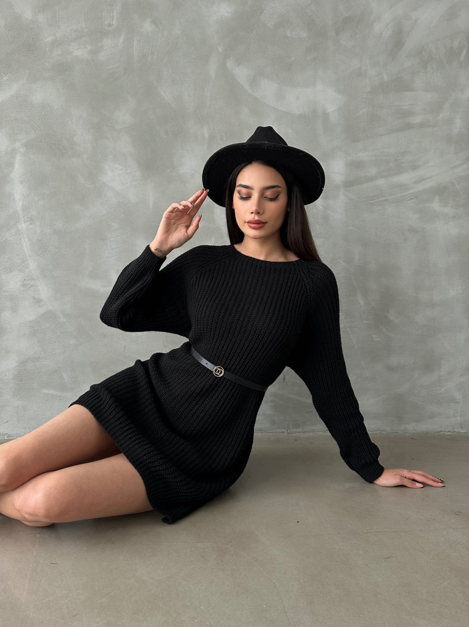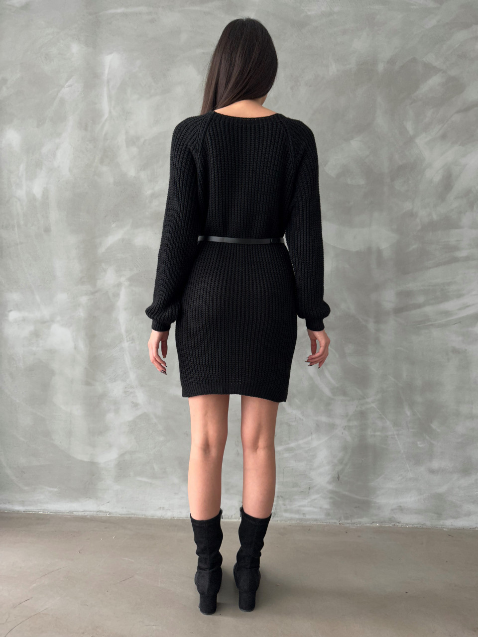 Pulover dama lung cu accesoriu curea