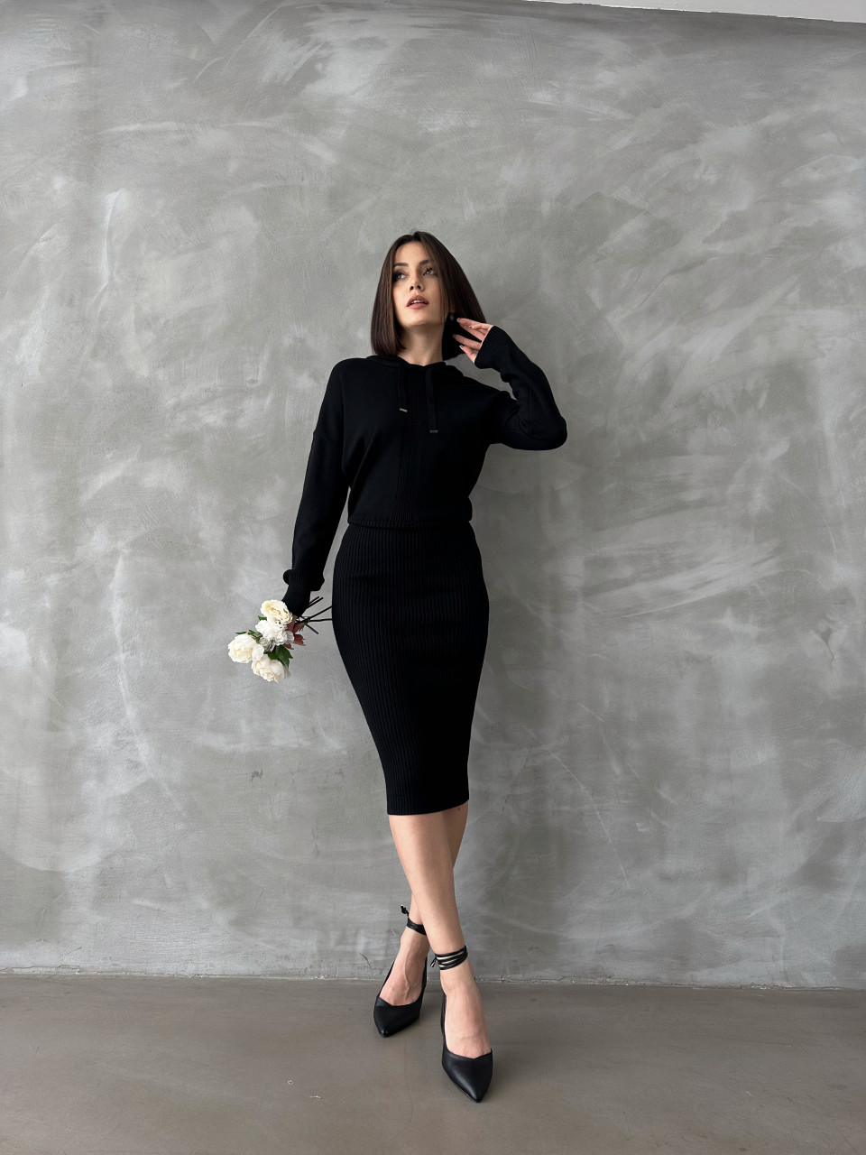 Rochie din tricot cu gluga