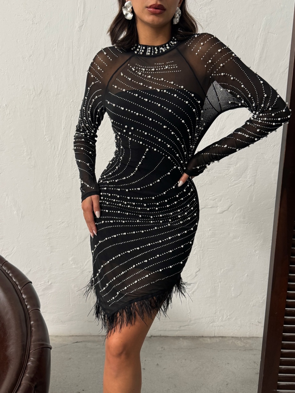Rochie elegant scurta accesorizata cu strasuri si fulgi