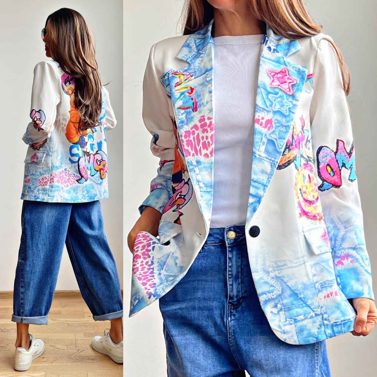 Sacou dama cu imprimeu colorat