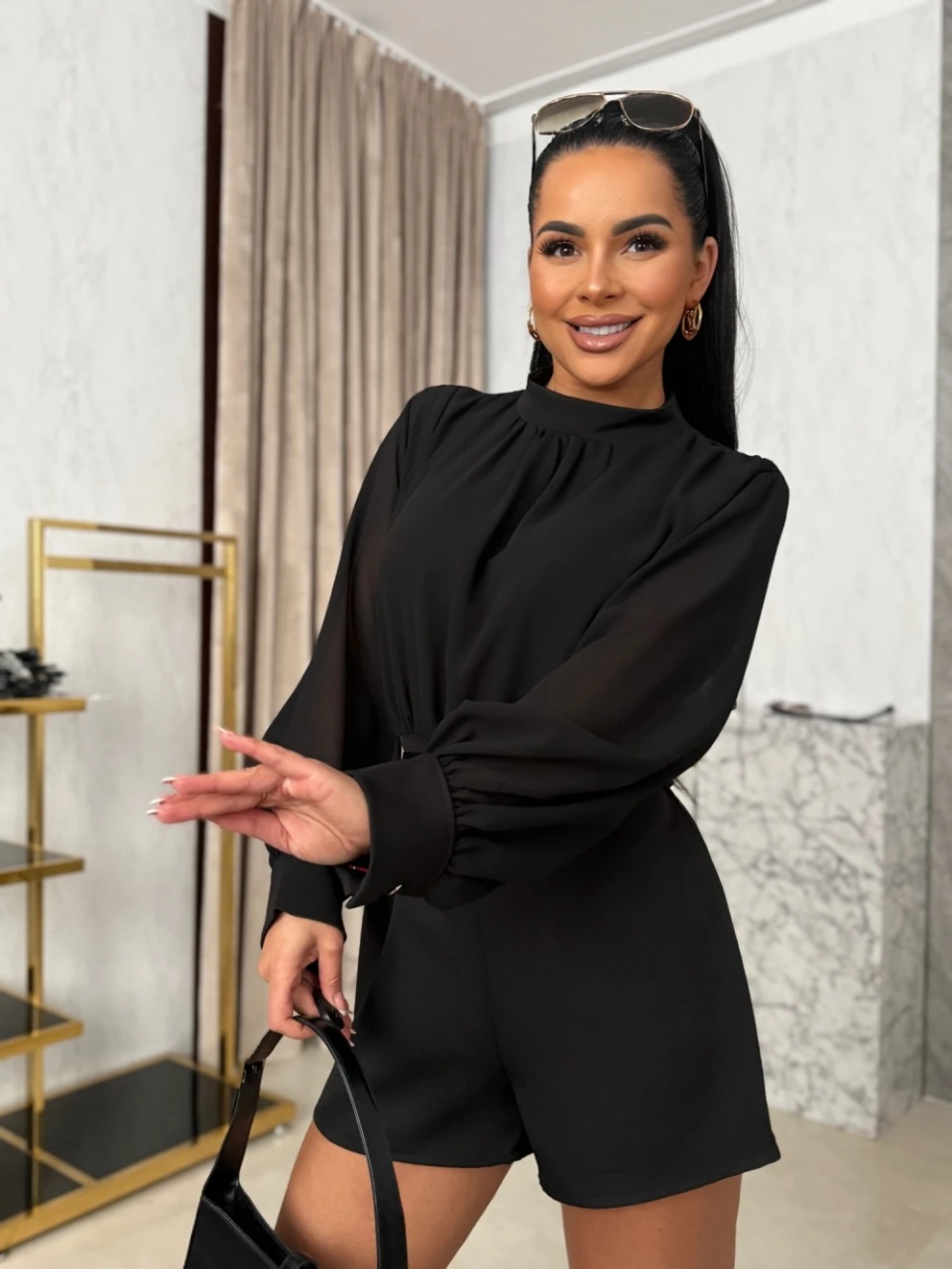Salopeta scurta cu accesoriu in talie
